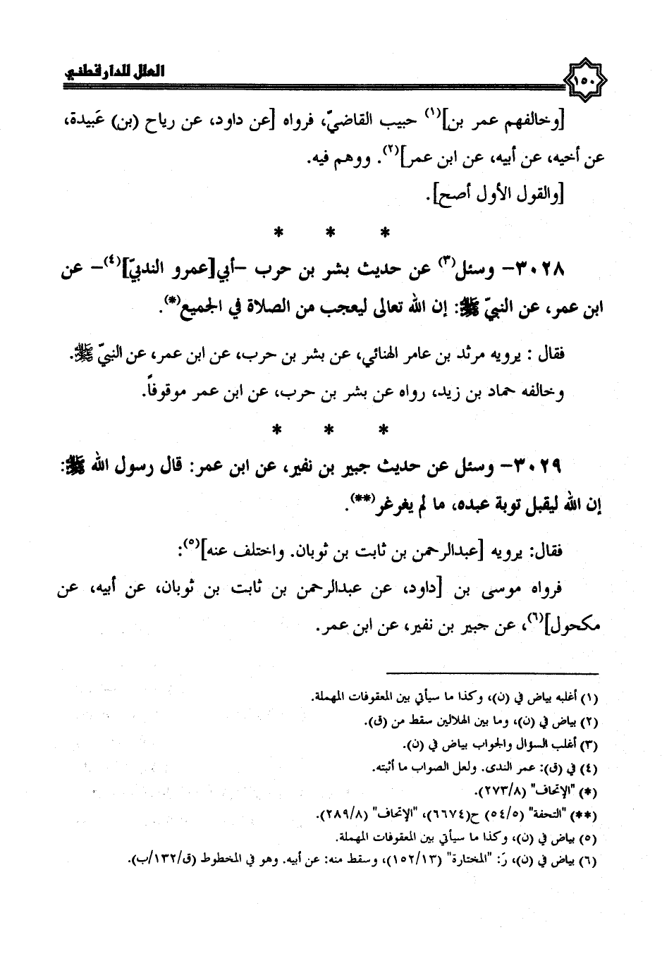 3029- وسئل عن حديث جبير بن نفير، عَنِ ابْنِ عُمَرَ: قَالَ رَسُولُ اللَّهِ صَلَّى اللَّهُ عَلَيْهِ وسلم.