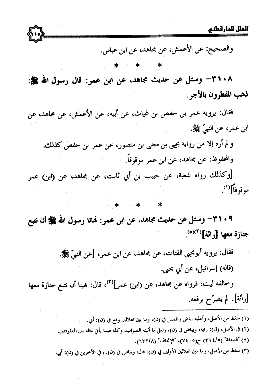 3108- وَسُئِلَ عَنْ حَدِيثِ مُجَاهِدٍ، عَنِ ابْنِ عُمَرَ: قَالَ رَسُولُ اللَّهِ صَلَّى الله عليه وسلم ذهب المفطرون بالأجر.