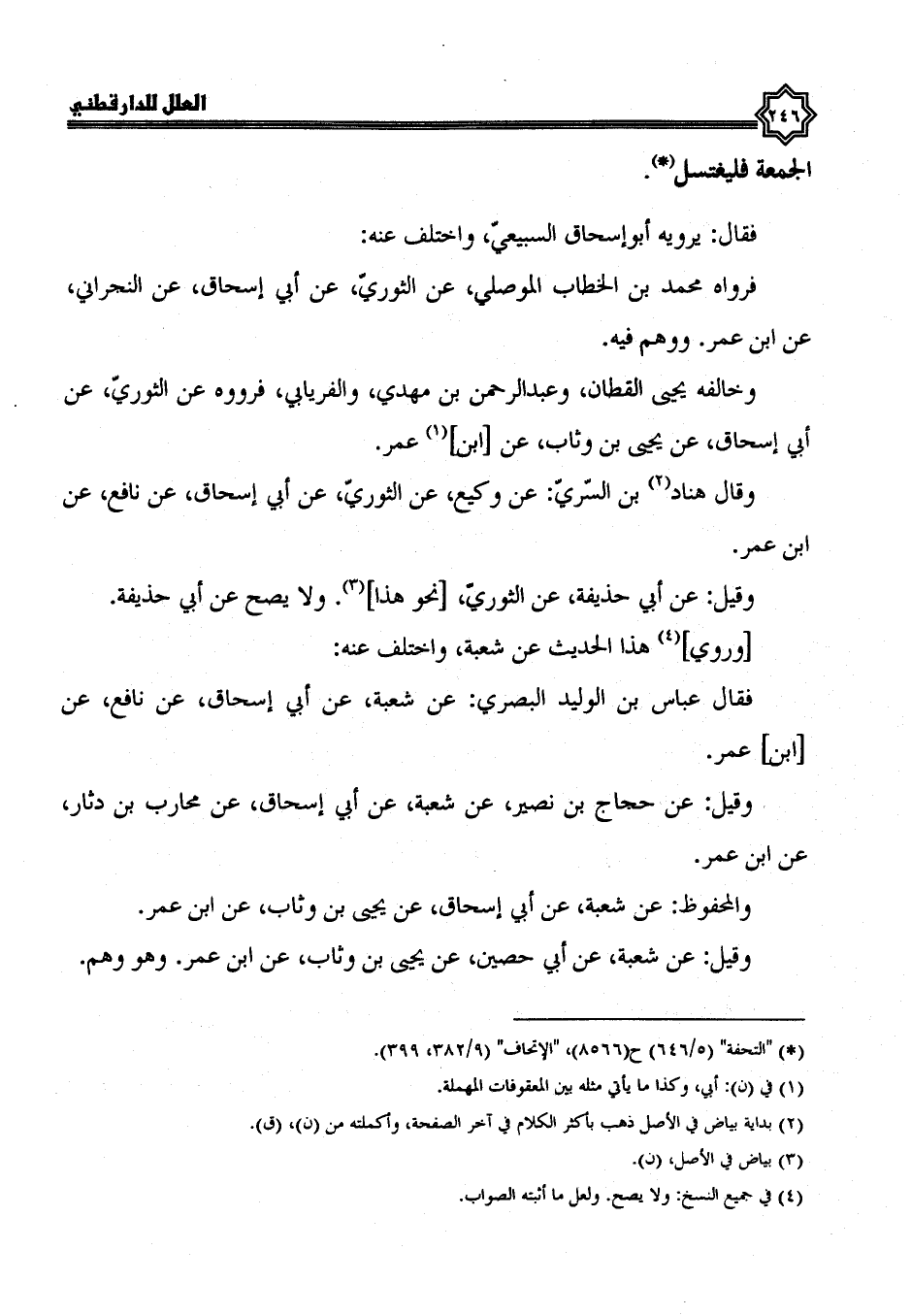 3144- وسئل عن حديث النجراني، عَنِ ابْنِ عُمَرَ، عَنِ النَّبِيِّ صَلَّى اللَّهُ عَلَيْهِ وَسَلَّمَ: مَنْ أَتَى الْجُمُعَةَ فَلْيَغْتَسِلْ.