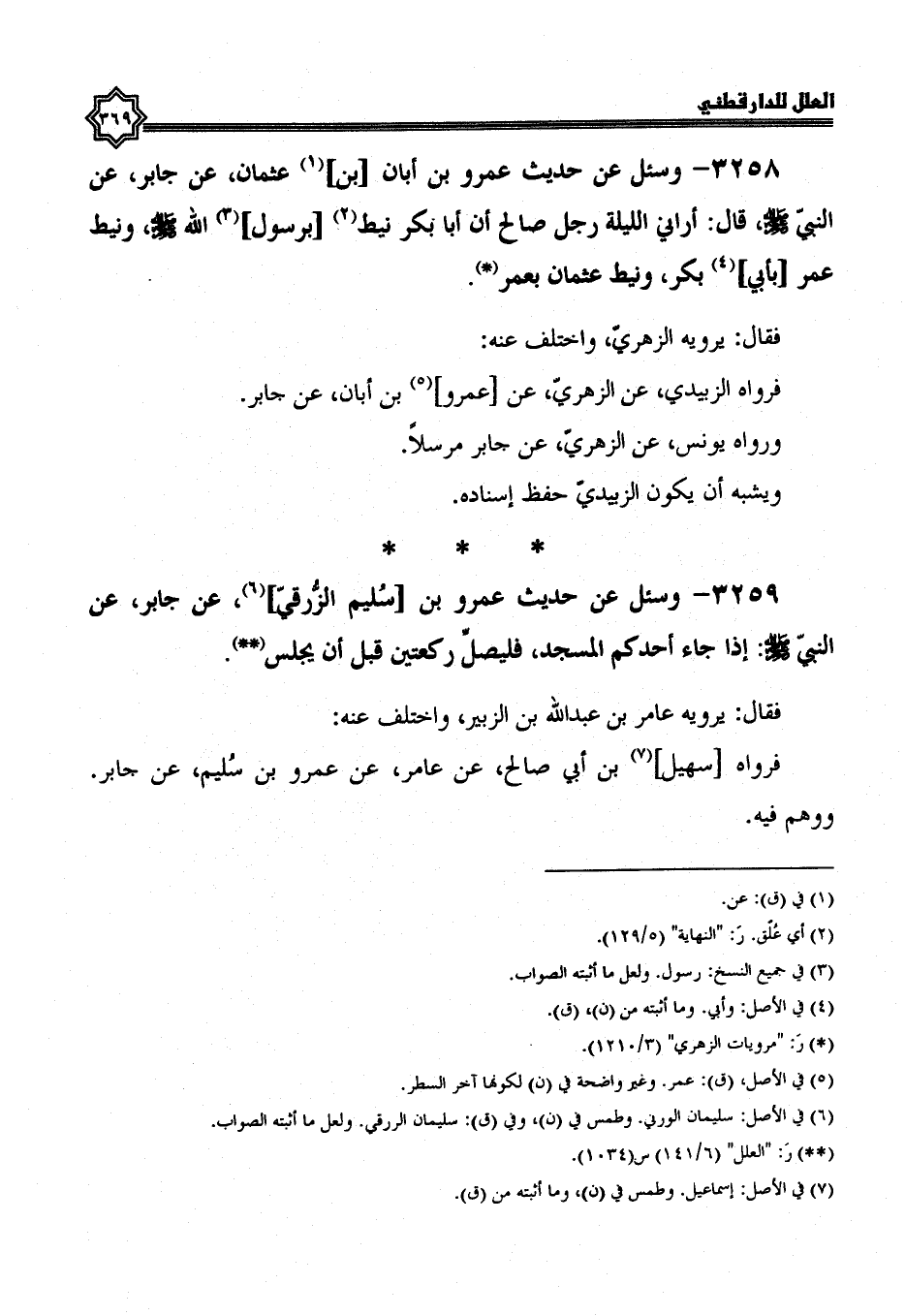 3259- وَسُئِلَ عَنْ حَدِيثِ عَمْرِو بْنِ سُلَيْمٍ الزُّرَقِيِّ، عَنْ جَابِرٍ، عَنِ النَّبِيِّ صَلَّى اللَّهُ عَلَيْهِ وسلم: إذا جاء أَحَدُكُمُ الْمَسْجِدَ فَلْيُصَلِّ رَكْعَتَيْنِ قَبْلَ أَنْ يَجْلِسَ.