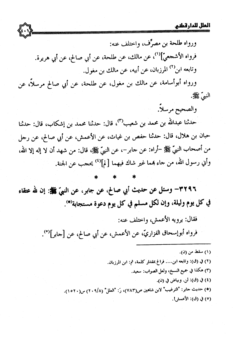 3296- وسئل عن حديث أبي صالح، عَنْ جَابِرٍ، عَنِ النَّبِيِّ صَلَّى اللَّهُ عَلَيْهِ وسلم: إن لله عتقاء في كل يوم وليلة، وإن لكل مسلم في كل يوم دَعْوَةٌ مُسْتَجَابَةٌ.