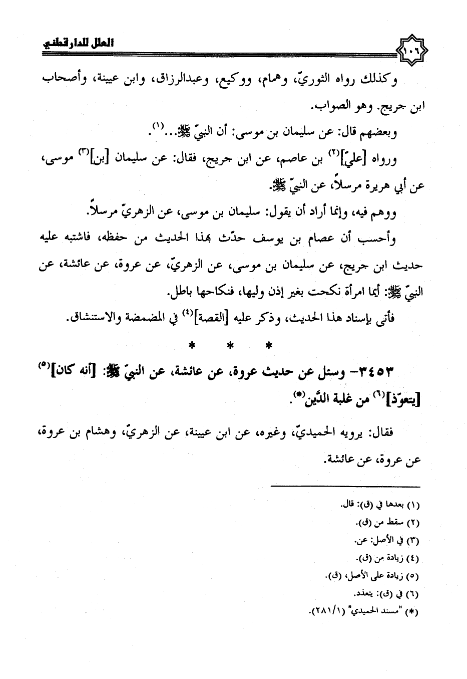 فقال: يرويه الحميدي، وغيره عن ابْنُ عُيَيْنَةَ، عَنِ الزُّهْرِيِّ، وَهِشَامُ بْنُ عُرْوَةَ، عن عروة، عن عائشة