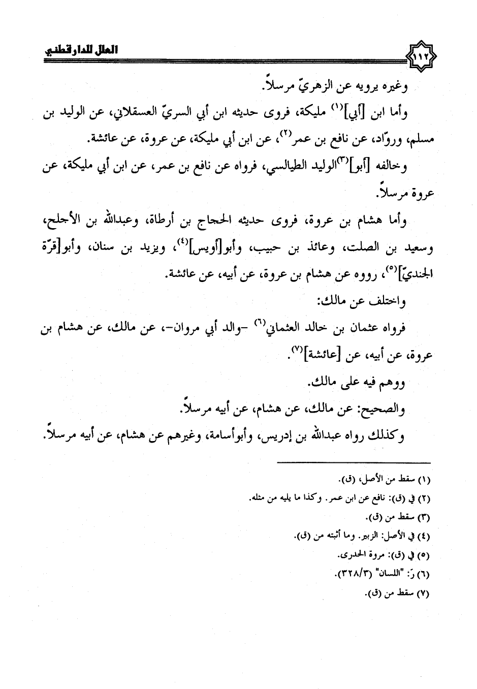 وَالصَّحِيحُ عَنْ مَالِكٍ، عَنْ هِشَامٍ، عَنْ أَبِيهِ مُرْسَلًا.