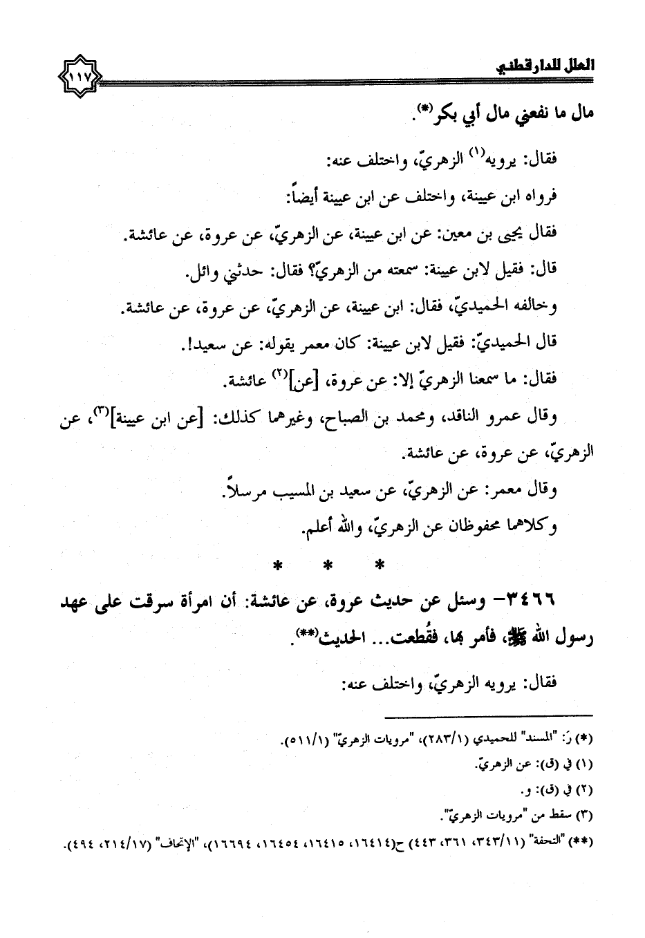3466- وسئل عن حديث عروة، عن عائشة: أن امرأة سرقت عَلَى عَهْدِ رَسُولِ اللَّهِ صَلَّى اللَّهُ عَلَيْهِ وسلم، فأمر بها، فقطعت الْحَدِيثَ.