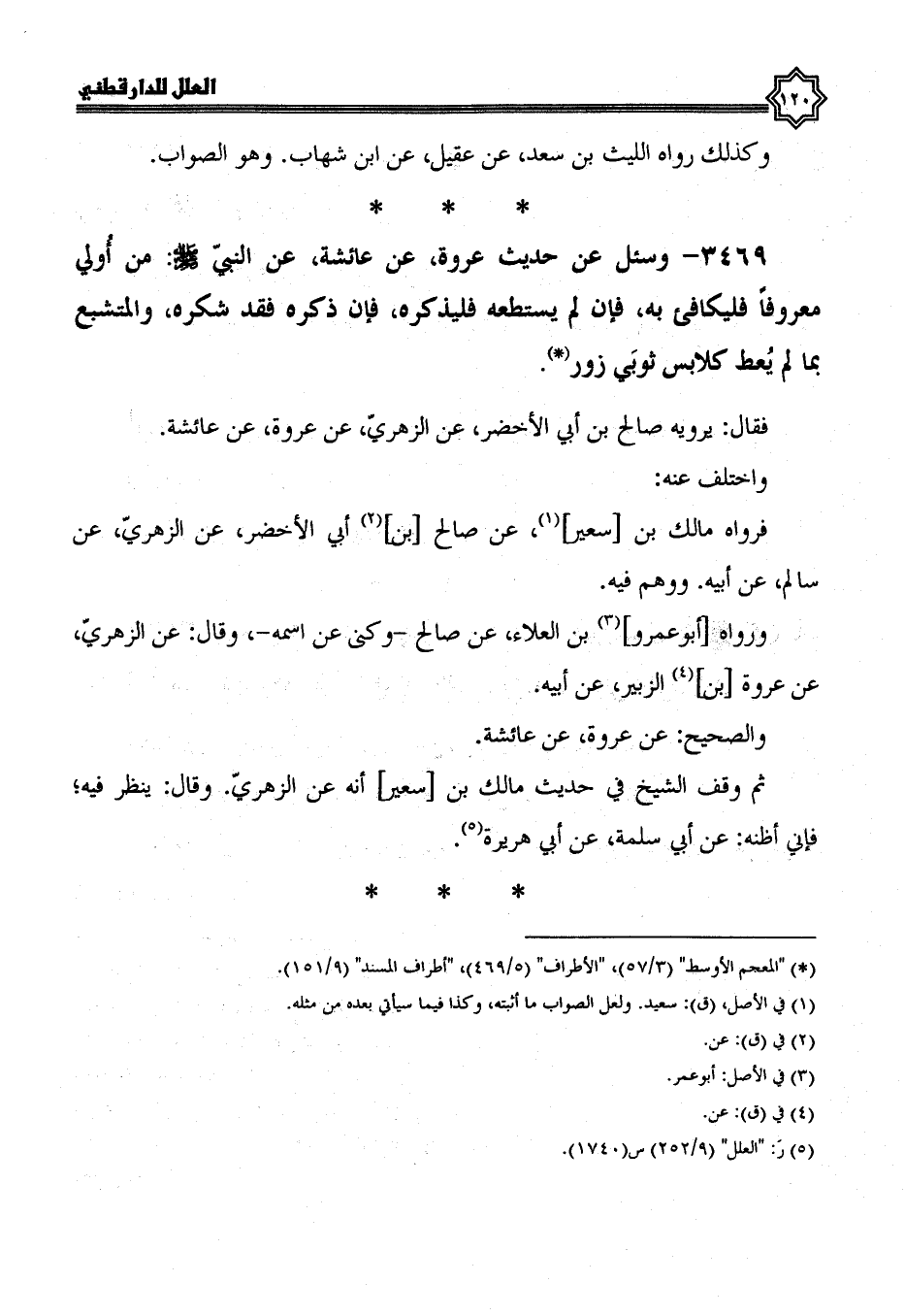 3469- وَسُئِلَ عَنْ حَدِيثِ عُرْوَةَ، عَنْ عَائِشَةَ، عَنْ النَّبِيِّ صَلَّى اللَّهُ عَلَيْهِ وسلم: من أولي معروفا فليكافئ به، فإن لم يستطعه، فليذكره، فإن ذَكَرَهُ، فَقَدْ شَكَرَهُ، وَالْمُتَشَبِّعُ بِمَا لَمْ يُعْطَ كَلَابِسِ ثَوْبَيْ زُورٍ.