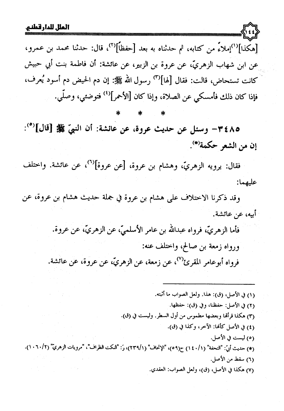 3485- وسئل عن حديث عروة، عن عائشة، أن النبي صلى الله عليه وسلم قال: إن من الشعر حكمة.