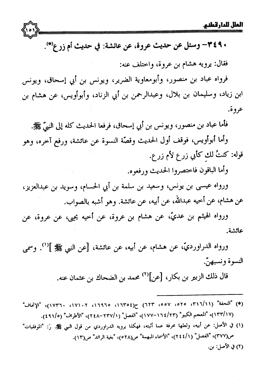 3490- وسئل عن حديث عروة، عن عائشة، في حديث أم زرع.