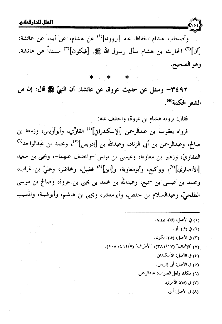 3492- وسئل عن حديث عروة، عن عائشة، أن النبي صلى الله عليه وسلم قال: إن من الشعر لحكمة.