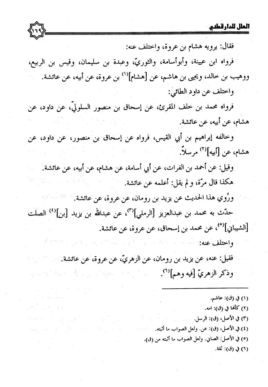 فرواه ابن عيينة، وأبو أسامة، والثوري، وعبدة بن سليمان، وقيس بن الربيع، ووهيب بن خالد، ويحيى بن هاشم، عن هشام بن عروة، عن أبيه، عن عائشة.