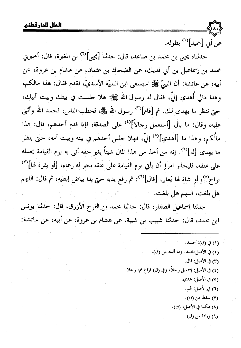 حدثناه يحيى بن محمد بن صاعد، قال: حدثنا يحيى بن المغيرة، قال: أخبرني محمد بن إسماعيل بن أبي فديك، عن الضحاك بن عثمان، عن هشام بن عروة، عن أبيه، عن عائشة، أن النبي صلى الله عليه وسلم استسعى ابن اللتبية الأسدي، فقدم، فقال: هذا مالكم، وهذا مالي أهدي.