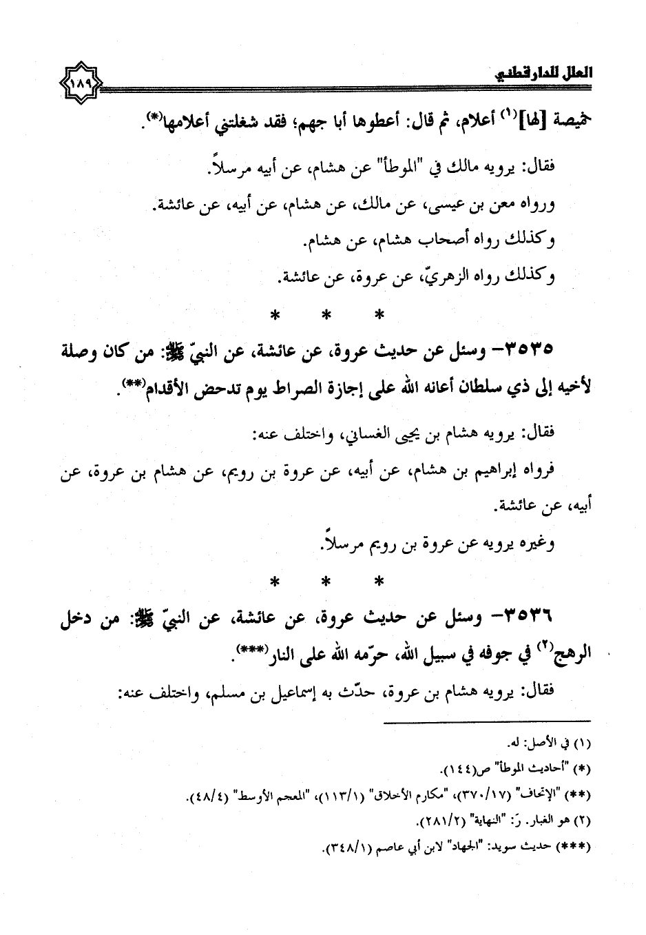3535- وَسُئِلَ عَنْ حَدِيثِ عُرْوَةَ، عَنْ عَائِشَةَ، عَنْ النَّبِيِّ صَلَّى اللَّهُ عَلَيْهِ وَسَلَّمَ: مَنْ كَانَ وصله لأخيه إلى ذي سلطان أعانه الله على إجازة الصراط يوم تدحض الأقدام.