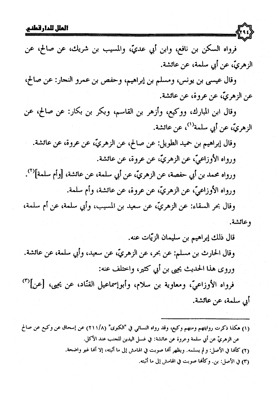 عَنِ الزُّهْرِيِّ، عَنْ عُرْوَةَ، عَنْ عائشة وقال ابن المبارك، ووكيع، وأزهر بن القاسم، وبكر بن بكار: عَنْ صَالِحٍ، عَنِ الزُّهْرِيِّ، عَنْ أَبِي سَلَمَةَ، عَنْ عَائِشَةَ وقال إبراهيم بن حميد الطويل: عَنْ صَالِحٍ، عَنِ الزُّهْرِيِّ، عَنْ عُرْوَةَ، عَنْ عائشة.