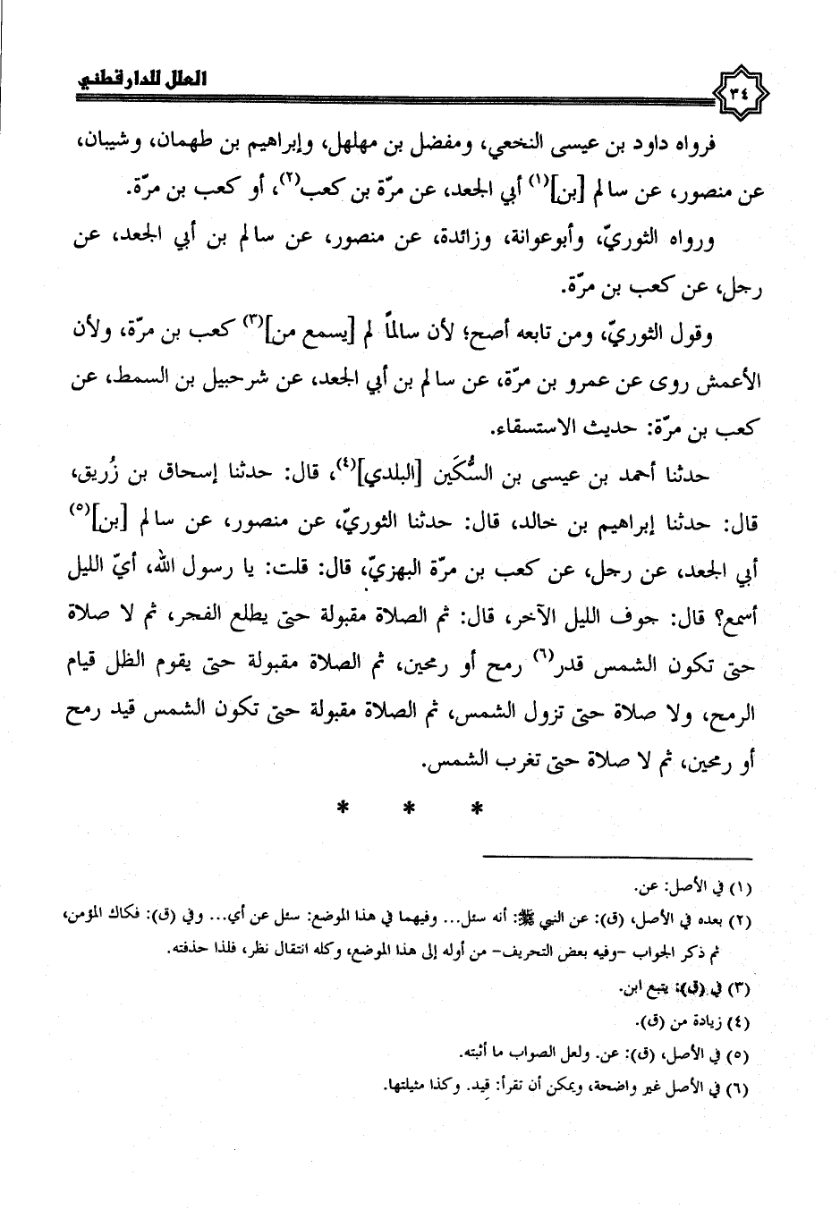فرواه داود بن عيسى النخعي، ومفضل بن مهلهل، وإبراهيم بن طهمان، وشيبان، عَنْ مَنْصُورٍ، عَنْ سَالِمِ بْنِ أَبِي الْجَعْدِ، عن مرة بن كعب، أو كعب بن مرة.