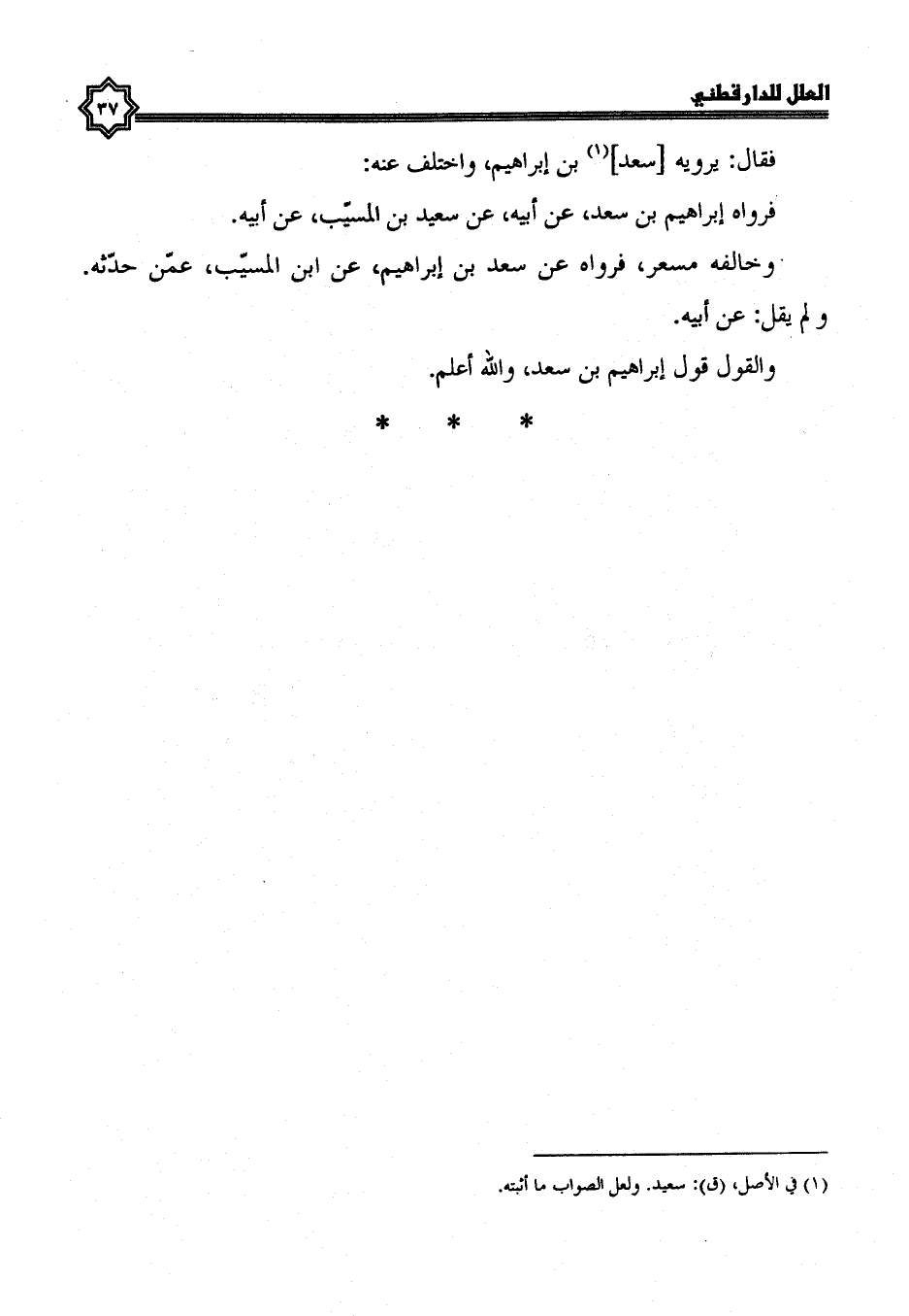 فَقَالَ: يَرْوِيهِ سَعْدُ بْنُ إِبْرَاهِيمَ، وَاخْتُلِفَ عَنْهُ؛