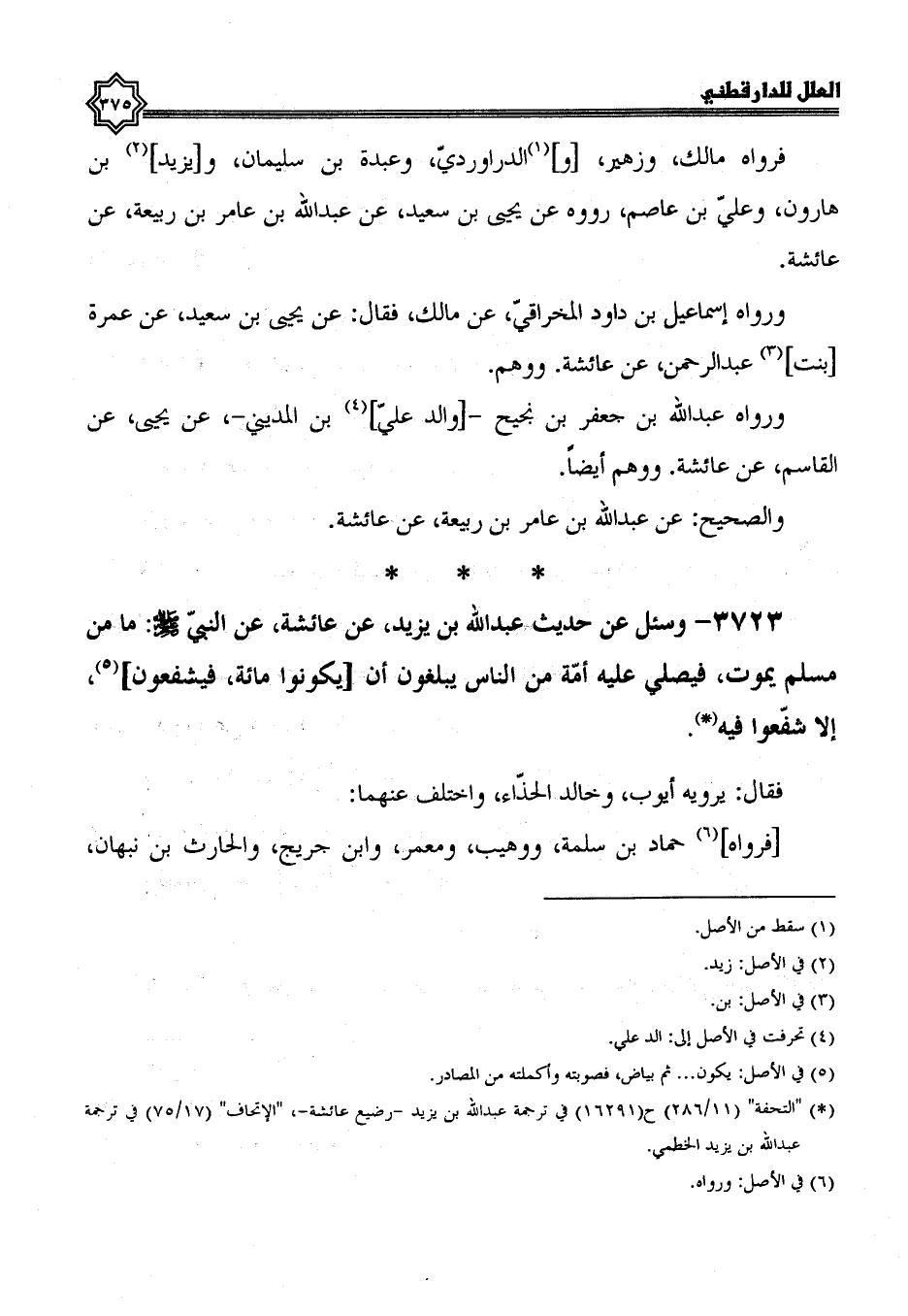 3723- وسئل عن حديث عَبْدِ اللَّهِ بْنِ يَزِيدَ، عَنْ عَائِشَةَ، عَنِ النَّبِيِّ صَلَّى اللَّهُ عَلَيْهِ وسلم ما من مسلم يموت فيصلي عليه أمة من الناس يبلغون أن يكونوا مئة فيشفعون إلا شفعوا فيه.
