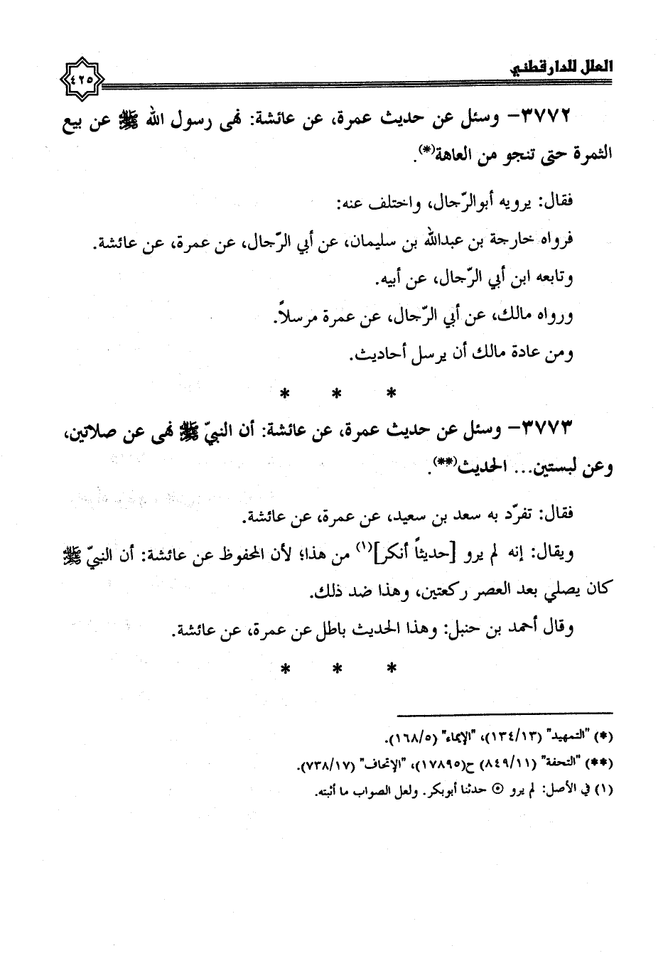 3772- وسئل عن حديث عمرة، عن عائشة نَهَى رَسُولُ اللَّهِ صَلَّى اللَّهُ عَلَيْهِ وَسَلَّمَ عن بيع الثمرة، حتى تنجو من العاهة.