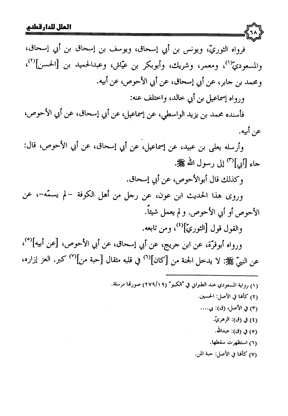 والمسعودي، ومعمر، وشريك، وأبو بكر بن عياش، وعبد الحميد بن الحسن، وَمُحَمَّدُ بْنُ جَابِرٍ، عَنْ أَبِي إِسْحَاقَ، عَنْ أبي الأحوص، عَنْ أَبِيهِ.