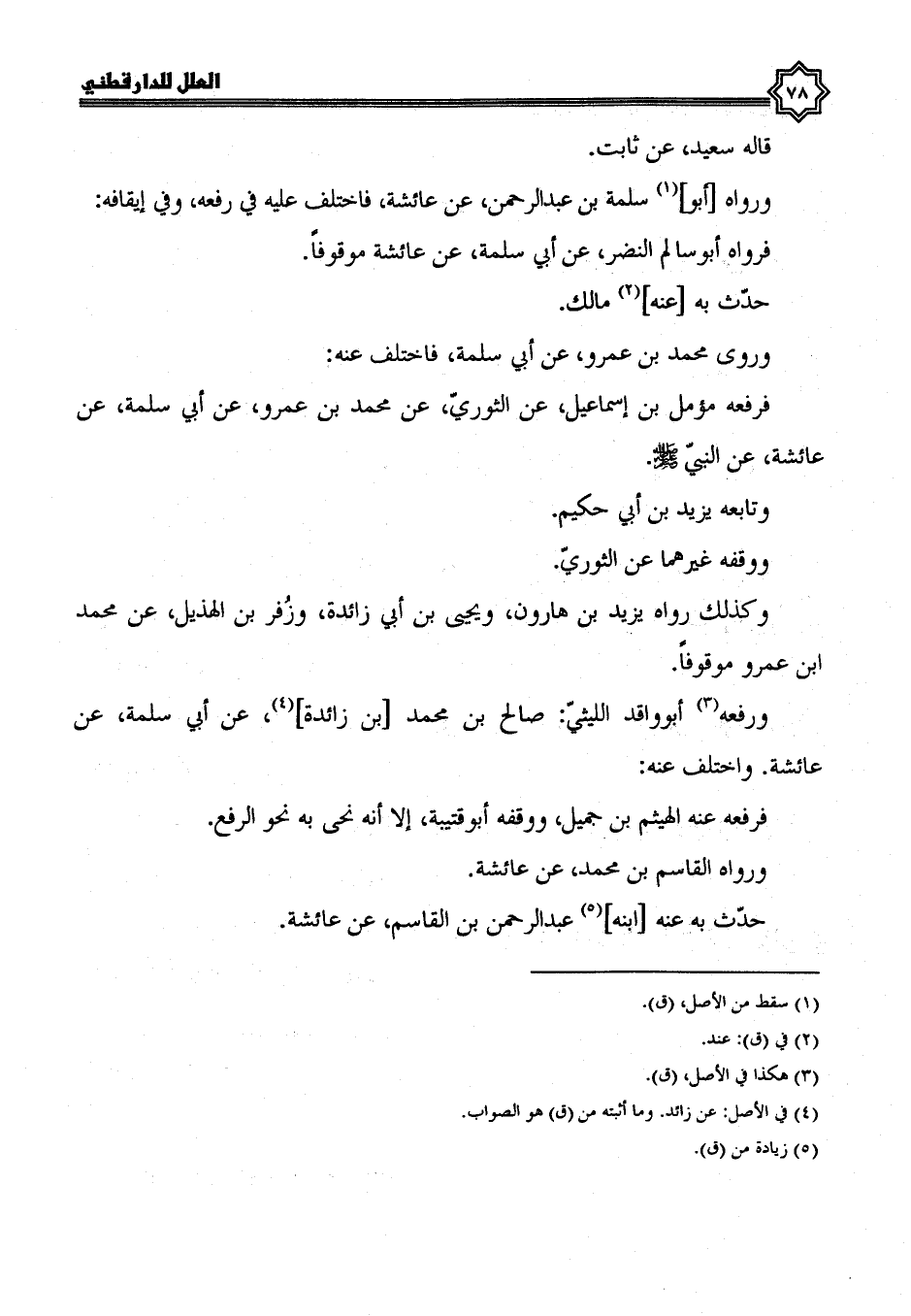 وكذلك رواه يزيد بن هارون، ويحيى بن أبي زائدة، وزفر بن الهذيل، عن محمد بن عمرو موقوفا، ورفعه أَبُو وَاقِدٍ اللَّيْثِيُّ صَالِحُ بْنُ مُحَمَّدِ بْنِ زائدة، عن أبي سلمة، عن عائشة، واختلف عنه فرفعه عنه الهيثم بن جميل ووقفه أبو قتيبة إلا أنه نحا به نحو الرفع.