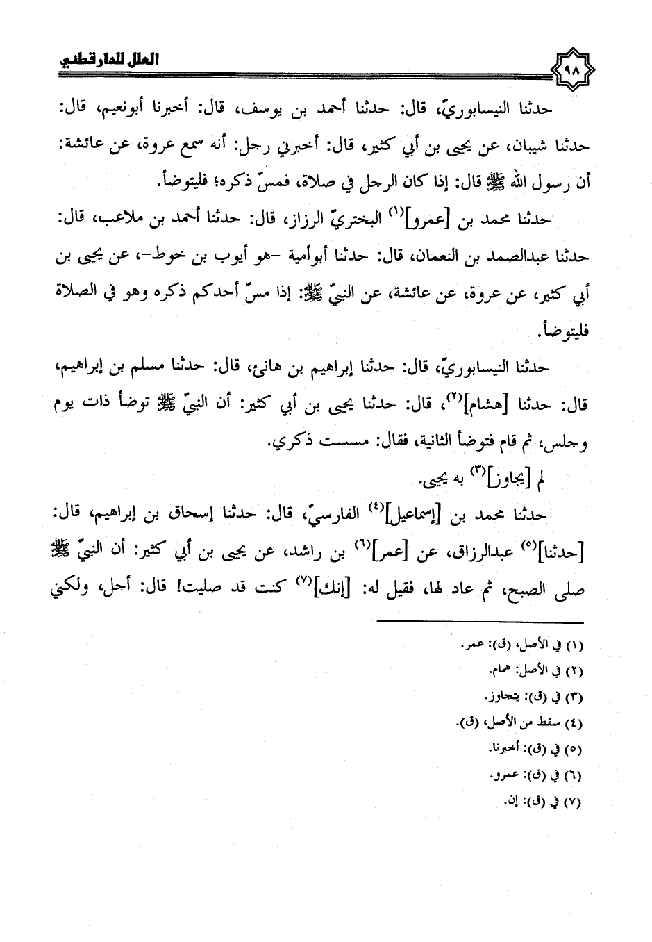 حدثنا محمد بن إسماعيل الفارسي، قال: حدثنا إسحاق بن إبراهيم، قال: حدثنا عبد الرزاق، عن معمر (1) بن راشد، عن يحيى بن أبي كثير، أَنَّ النَّبِيَّ صَلَّى اللَّهُ عَلَيْهِ وَسَلَّمَ، صَلَّى الصبح، ثم عاد لها، فقيل له: إنك كنت قد صليت قال: أجل، ولكني مسست ذكري، فنسيت أن أتوضأ.