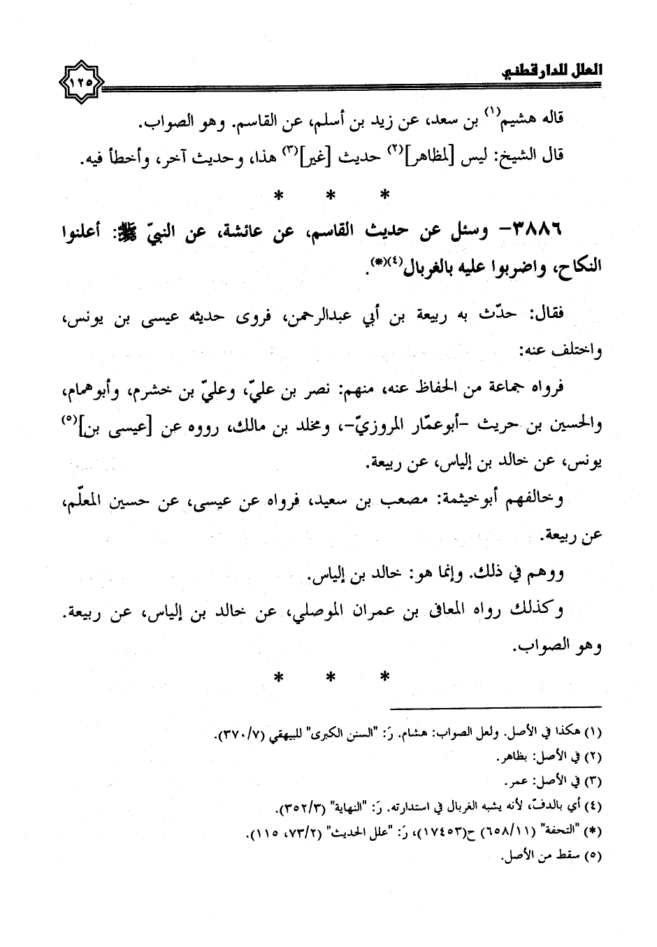وكذلك رواه المعافى بن عمران الموصلي، عن خالد بن إلياس، عن ربيعة وهو الصواب.