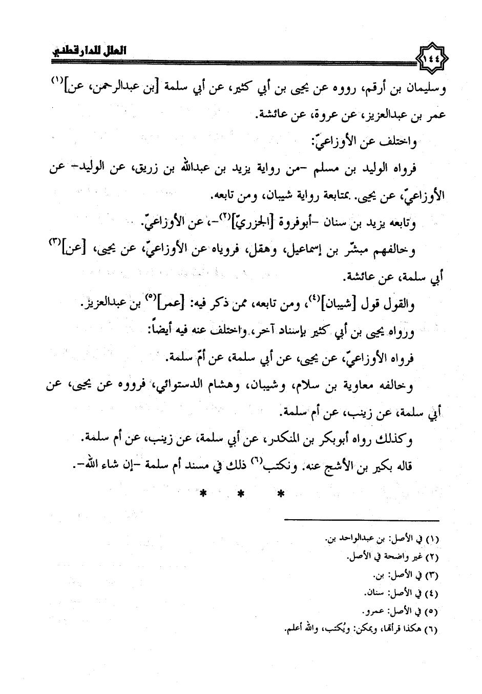 وسليمان بن أرقم رَوَوْهُ عَنْ يَحْيَى بْنِ أَبِي كَثِيرٍ، عَنْ أبي سلمة بن عبد الرحمن، عن عمر بن عبد العزيز، عن عروة، عن عائشة وَاخْتُلِفَ عَنِ الْأَوْزَاعِيِّ؛