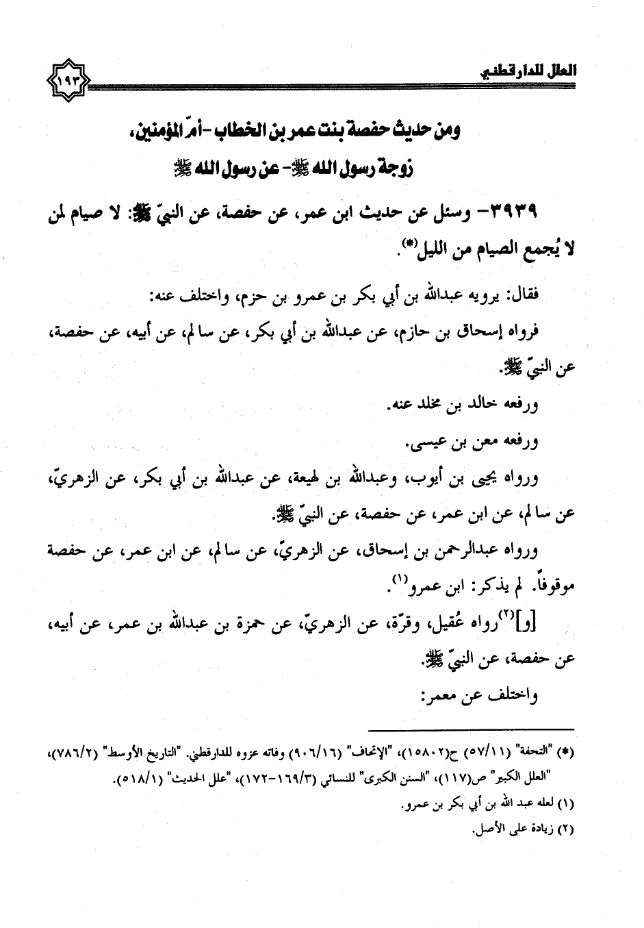 3939- وسئل عن حديث ابن عمر، عن حفصة، عَنِ النَّبِيِّ صَلَّى اللَّهُ عَلَيْهِ وَسَلَّمَ، لَا صيام لمن لا يجمع الصيام من الليل.