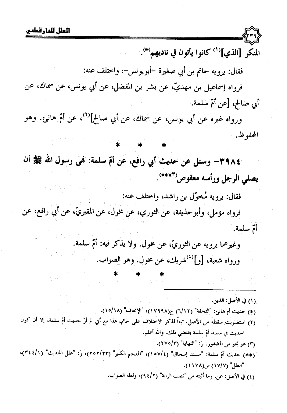 3984- وسئل عن حديث أبي رافع، عن أم سلمة، نَهَى رَسُولُ اللَّهِ صَلَّى اللَّهُ عَلَيْهِ وَسَلَّمَ أن يصلي الرجل ورأسه معقوص.