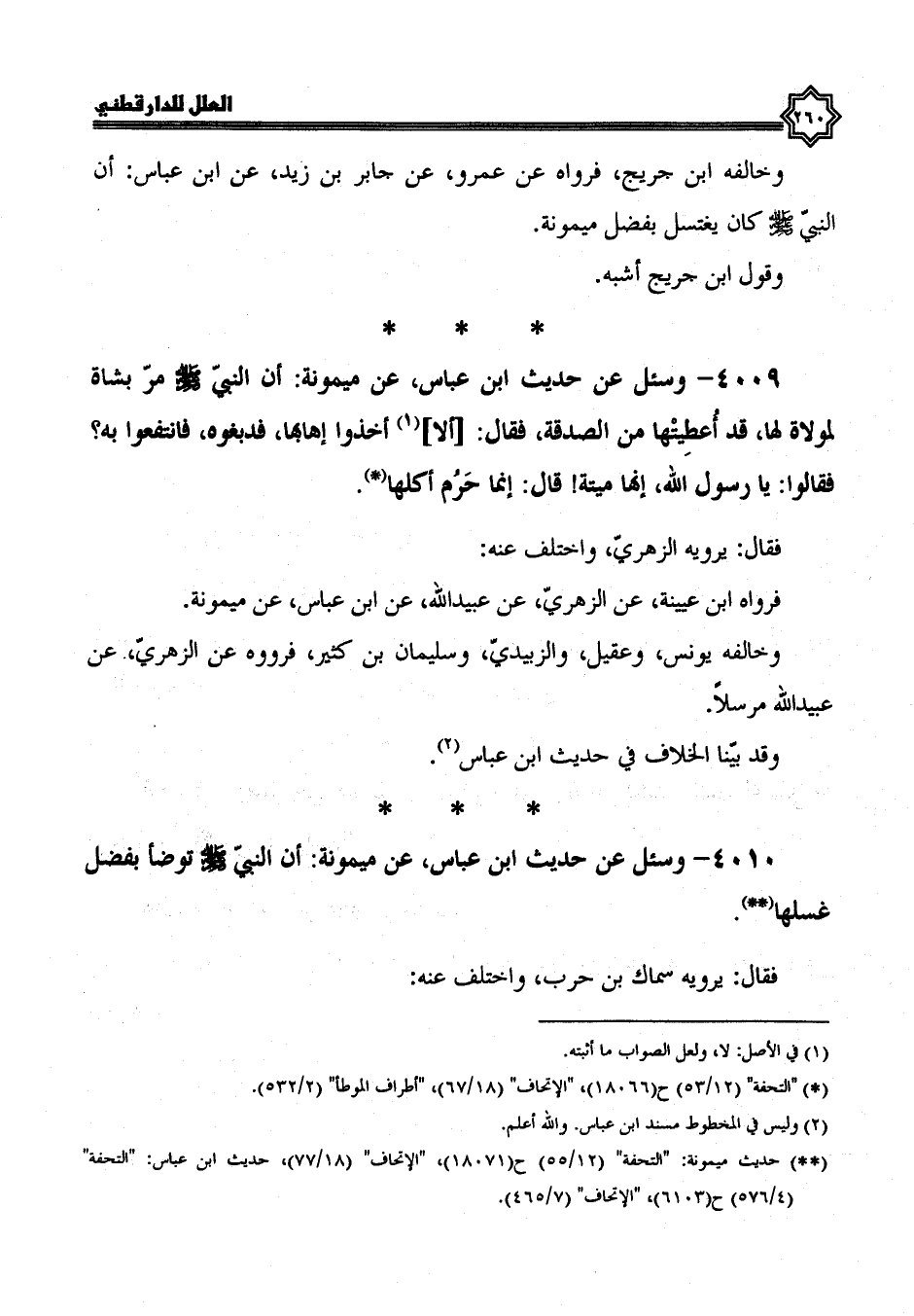 4009- وسئل عن حديث ابن عباس، عن ميمونة، أَنَّ النَّبِيَّ صَلَّى اللَّهُ عَلَيْهِ وَسَلَّمَ، مَرَّ بشاة لمولاة لها قد أعطيتها من الصدقة، فقال: ألا أخذوا إهابها فدبغوه، فانتفعوا به، فقالوا: يا رسول الله، إنها ميتة؟ قال: إنما حرم أكلها.