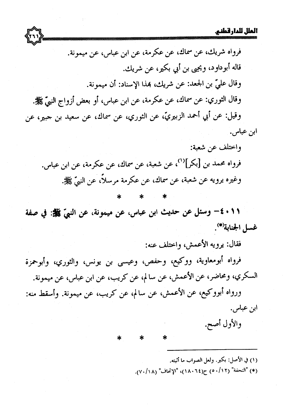 4011- وسئل عن حديث ابن عباس، عن ميمونة، عَنِ النَّبِيِّ صَلَّى اللَّهُ عَلَيْهِ وَسَلَّمَ، فِي صفة غسل الجنابة.