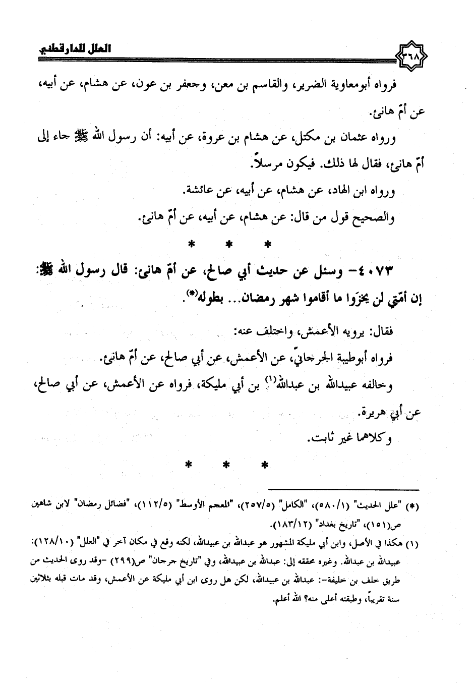 4073- وسئل عن حديث أبي صالح، عن أم هانئ، قال رسول الله صلى الله عليه وسلم: إن أمتي لن يخزوا ما أقاموا شهر رمضان ... بِطُولِهِ.