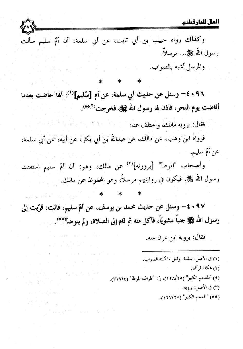 4096- وسئل عن حديث أبي سلمة، عن أم سليم، أنها حاضت بعدما أفاضت يوم النحر، فأذن لَهَا رَسُولُ اللَّهِ صَلَّى اللَّهُ عَلَيْهِ وَسَلَّمَ، فخرجت.
