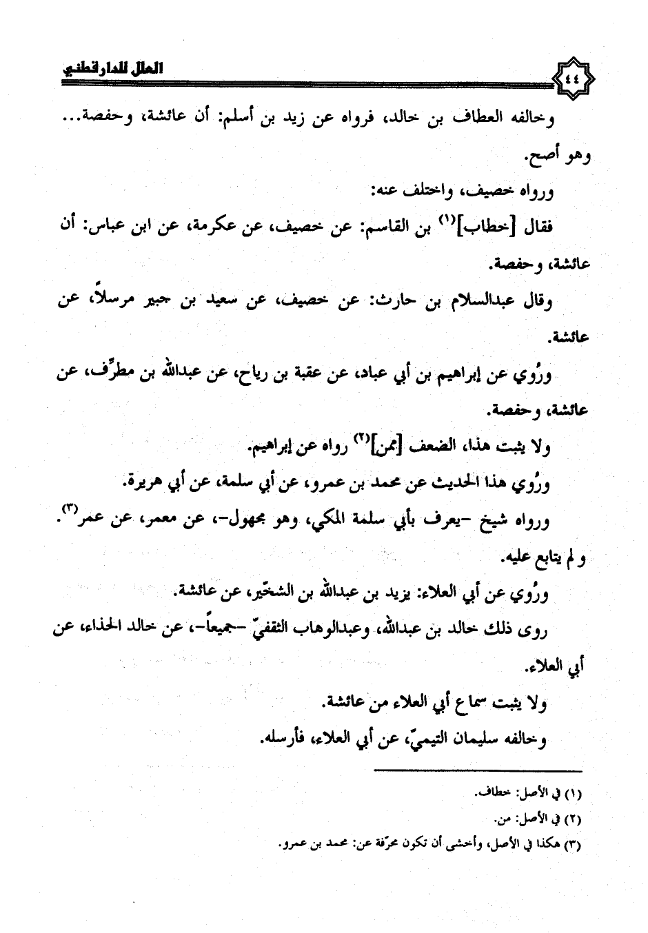 روى ذلك خالد بن عبد الله، وعبد الوهاب الثقفي، جميعا، عن خالد الحذاء، عن أبي العلاء.