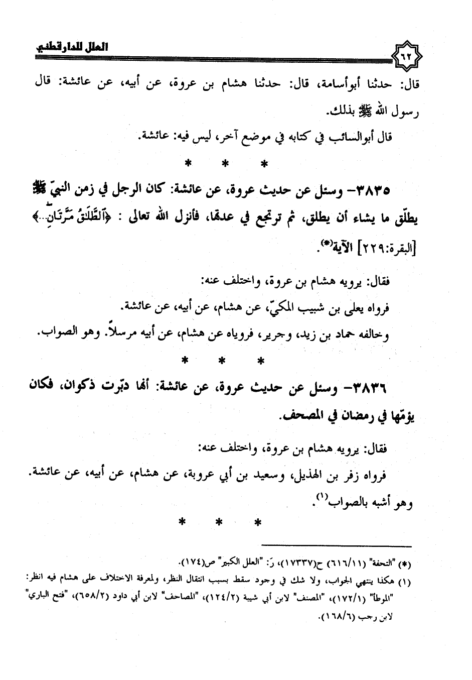 3835- وسئل عن حديث عروة، عن عائشة؛ كان الرجل في زمن النبي صلى الله عليه وسلم يطلق ما يشاء أن يطلق، ثم ترتجع في عدتها، فأنزل الله تعالى: {الطلاق مرتان} ، الآية.