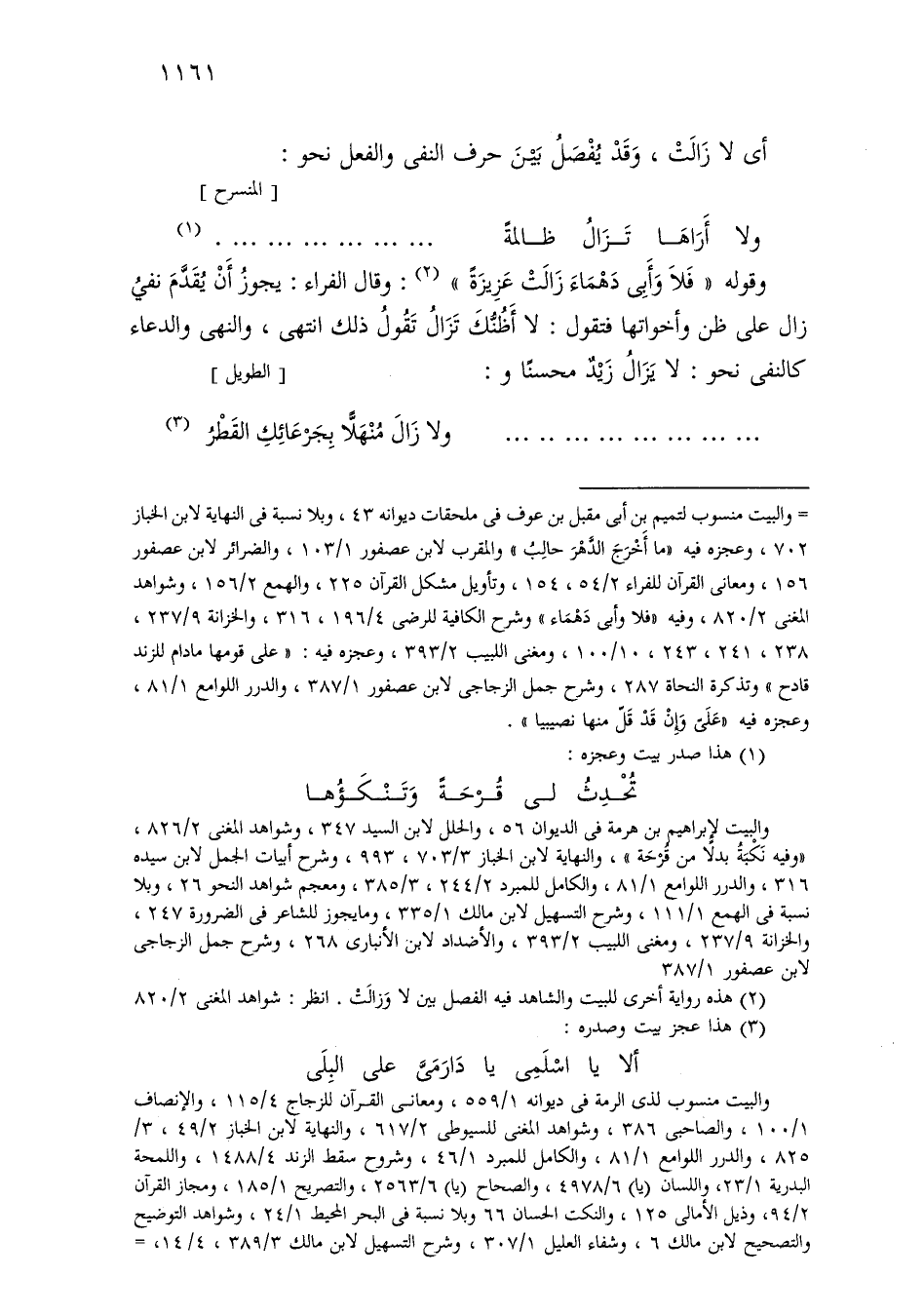 أي لا زالت، وقد يفصل بين حرف النفي والفعل نحو: