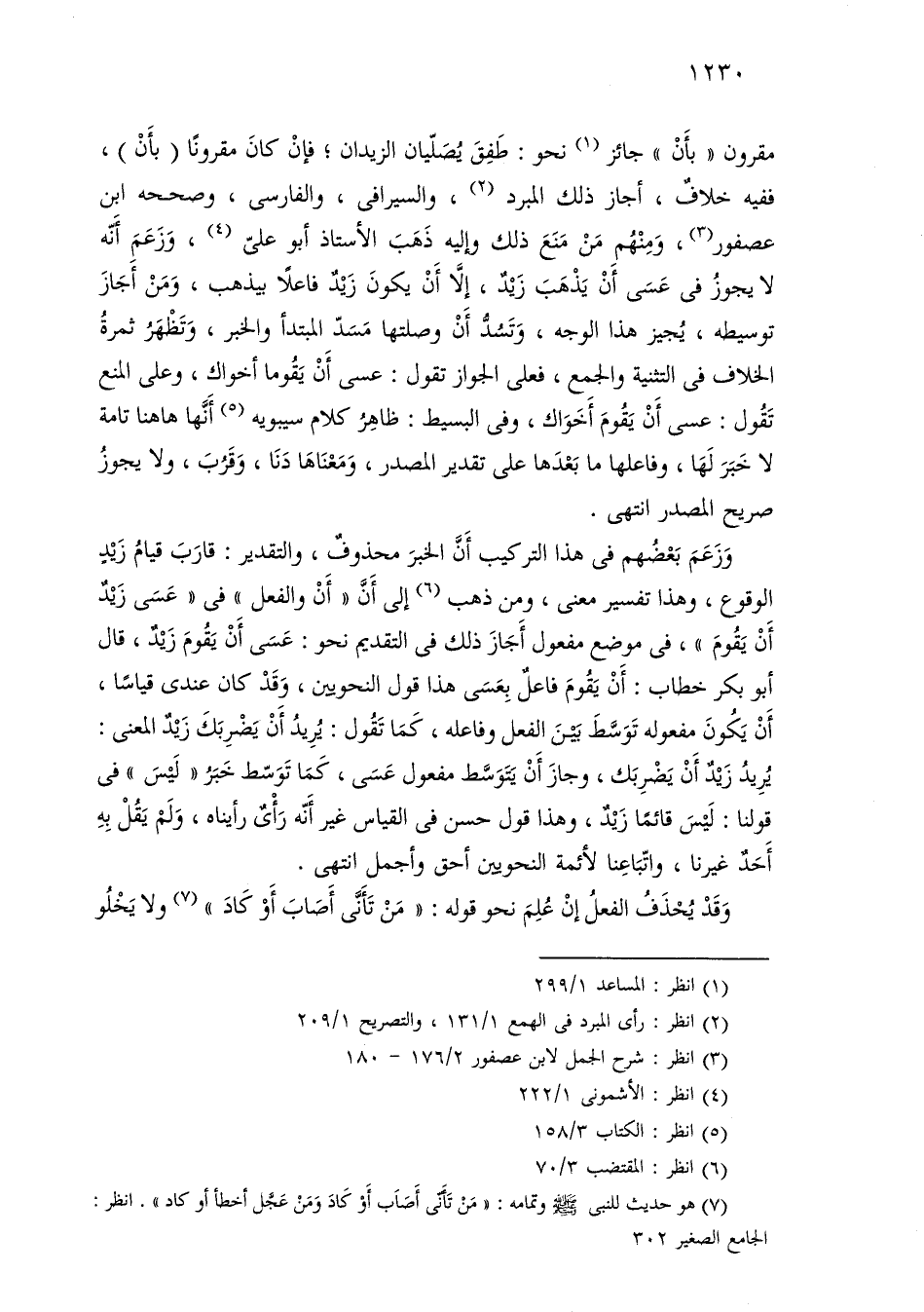 مقرون «بأن» جائز نحو: طفق يصليان الزيدان؛ فإن كان مقرونًا (بأن)، ففيه خلاف، أجاز ذلك المبرد، والسيرافي، والفارسي، وصححه ابن عصفور، ومنهم من منع ذلك وإليه ذهب الأستاذ أبو علي، وزعم أنه لا يجوز في عسى أن يذهب زيد، إلا أن يكون زيد فاعلاً بيذهب، ومن أجاز توسيطه، يجيز هذا الوجه، وتسد أن وصلتها مسد المبتدأ والخبر، وتظهره ثمرة الخلاف في التثنية والجمع، فعلى الجواز تقول: عسى أن يقوما أخواك، وعلى المنع تقول: عسى أن يقوم أخواك، وفي البسيط: ظاهر كلام سيبويه أنها هاهنا تامة لا خبر لها، وفاعلها ما بعدها على تقدير المصدر، ومعناها دنا، وقرب، ولا يجوز صريح المصدر انتهى.