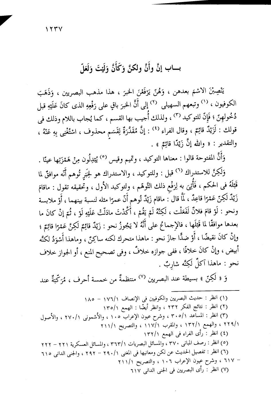 و «لكن» بسيطة عند البصريين منتظمة من خمسة أحرف، مركبة عند