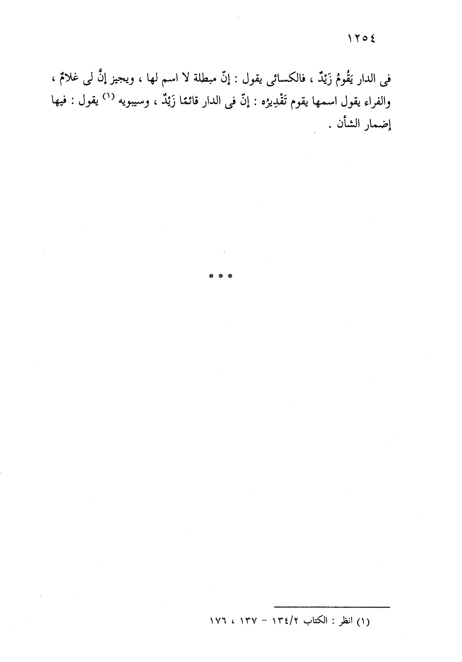 في الدار يقوم زيد، فالكسائي يقول: إن مبطلة لا اسم لها، ويجيز إن لي غلام، والفراء يقول اسمها يقوم تقديره: إن في الدار قائمًا زيد، وسيبويه يقول: فيها إضمار الشأن.