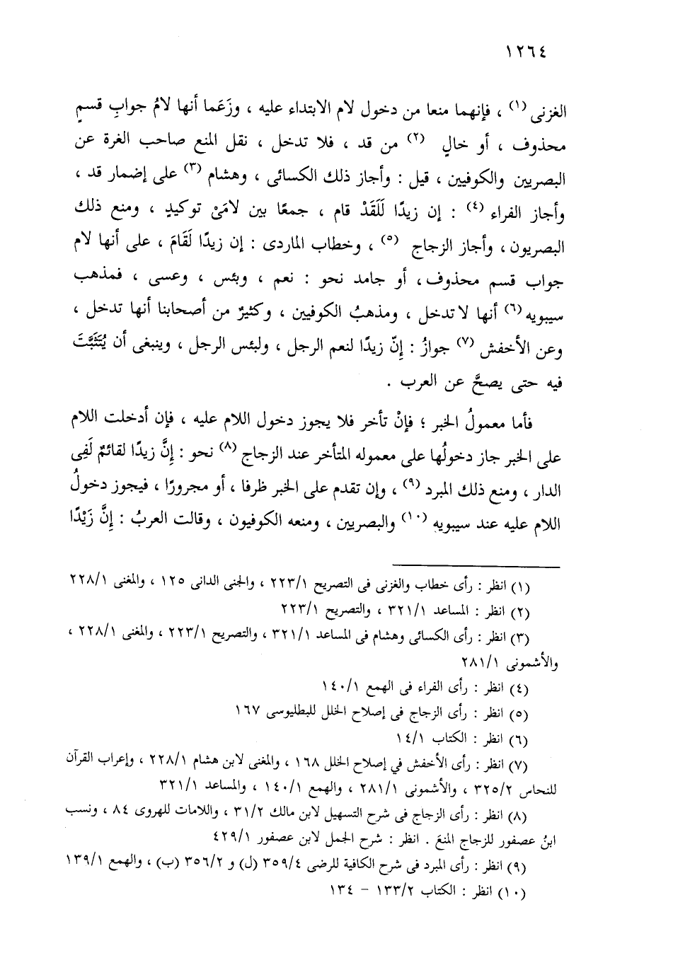 الغزني، فإنهما منعا من دخول لام الابتداء عليه، وزعما أنها لام جواب قسم محذوف، أو خال من قد، فلا تدخل، نقل المنع صاحب الغرة عن البصريين والكوفيين، قيل: وأجاز ذلك الكسائي، وهشام على إضمار قد، وأجاز الفراء: إن زيدًا للقد قام، جمعًا بين لامي توكيد، ومنع ذلك البصريون، وأجاز الزجاج، وخطاب الماردي: إن زيدًا لقام، على أنها لام جواب قسم محذوف، أو جامد نحو: نعم، وبئس، وعسى، فمذهب سيبويه أنها لا تدخل، ومذهب الكوفيين، وكثير من أصحابنا أنها تدخل، وعن الأخفش جواز: إن زيدًا لنعم الرجل، ولبئس الرجل، وينبغي أن يتثبت فيه حتى يصح عن العرب.