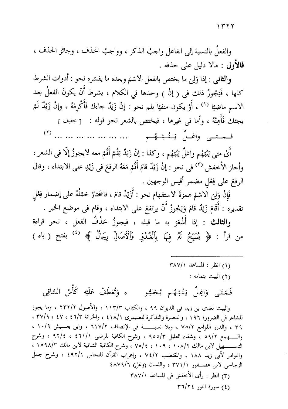والثاني: إذا ولى ما يختص بالفعل الاسم وبعده ما يفسره نحو: أدوات الشرط كلها، فيجوز ذلك في (إن) وحدها في الكلام، بشرط أن يكون الفعل بعد الاسم ماضيًا، أو يكون منفيًا بلم نحو: إن زيد جاءك فأكرمه، وإن زيد لم يجئك فأهنه، وأما في غيرها، فيختص بالشعر نحو قوله: