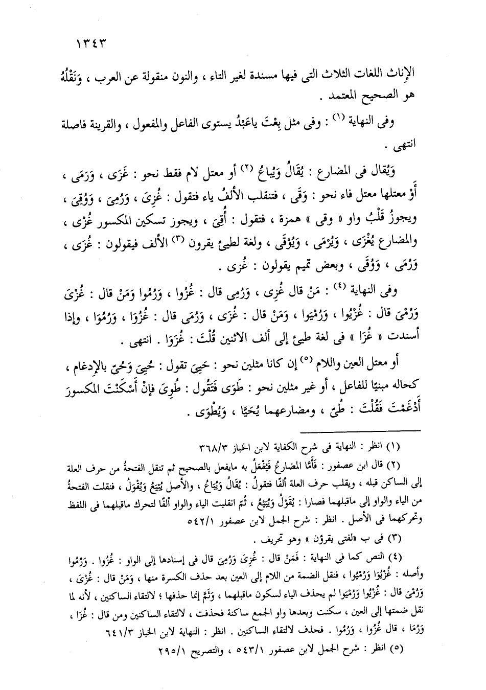 الإناث اللغات الثلاث التي فيها مسندة لغير التاء، والنون منقولة عن العرب، ونقله هو الصحيح المعتمد.