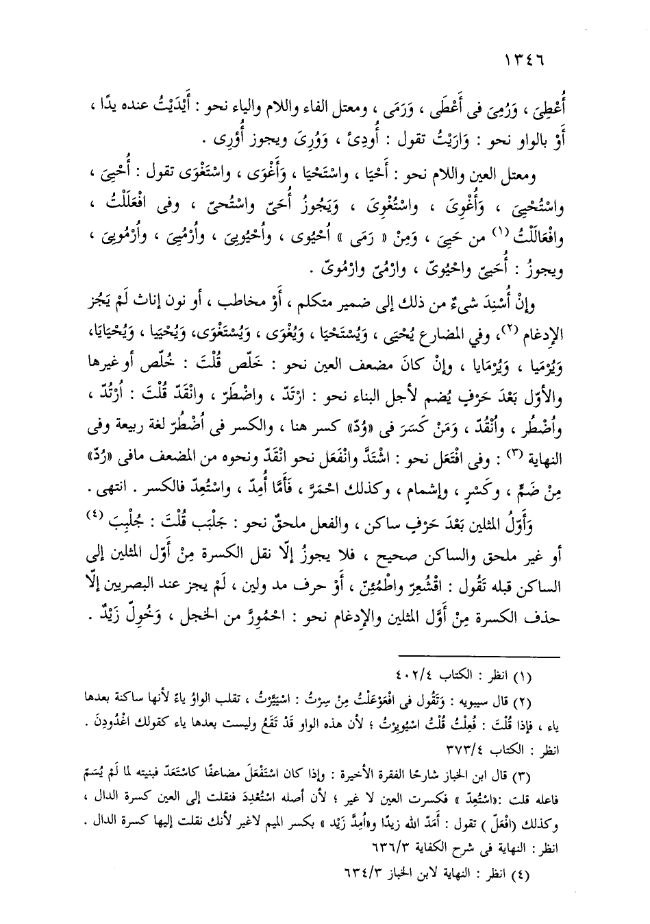 ومعتل العين واللام نحو: أحيا، واستحيا، وأغوى، واستغوى تقول: أحيى، واستحيى، وأغوى، واستغوى، ويجوز أحي واستحيى، وفي افعللت، وافعاللت من حيى، ومن «رمى» أحيوى، وأحيويى، وأرميى، وأرمويى، ويجوز: أحيى واحيوى، وارمى وارموى.
