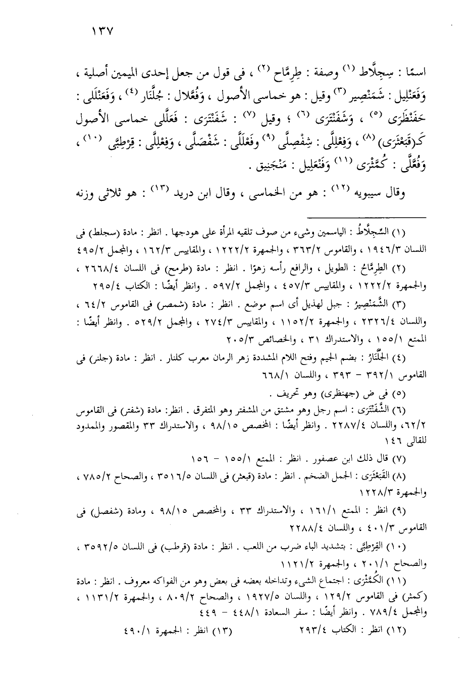 وقال سيبويه: هو من الخماسي، وقال ابن دريد: هو ثلاثي وزنه