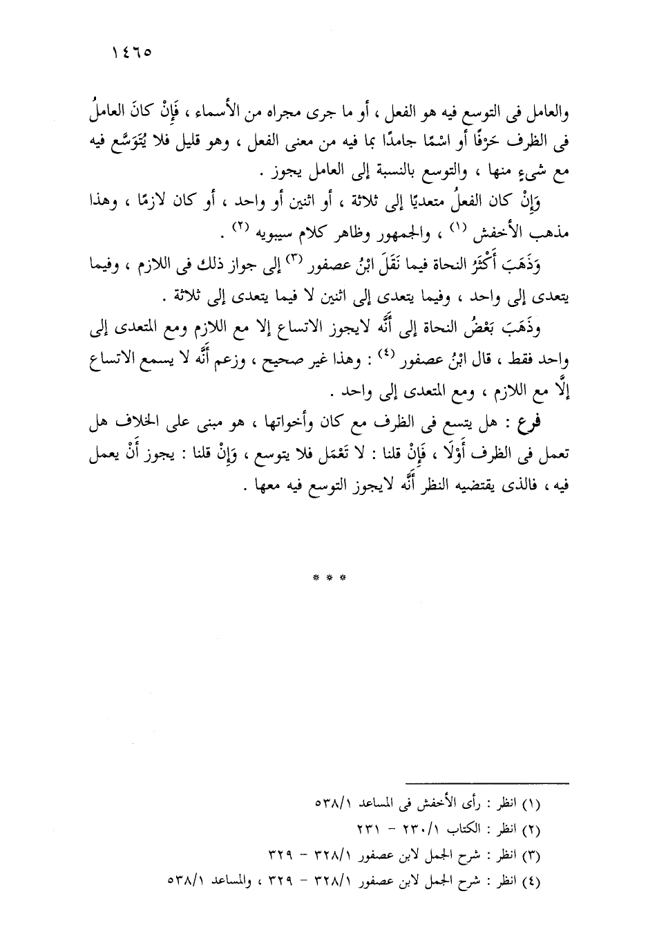 وذهب بعض النحاة إلى أنه لا يجوز الاتساع إلا مع اللازم ومع المتعدي إلى واحد فقط، قال ابن عصفور: وهذا غير صحيح، وزعم أنه لا يسمع الاتساع إلا مع اللازم، ومع المتعدي إلى واحد.