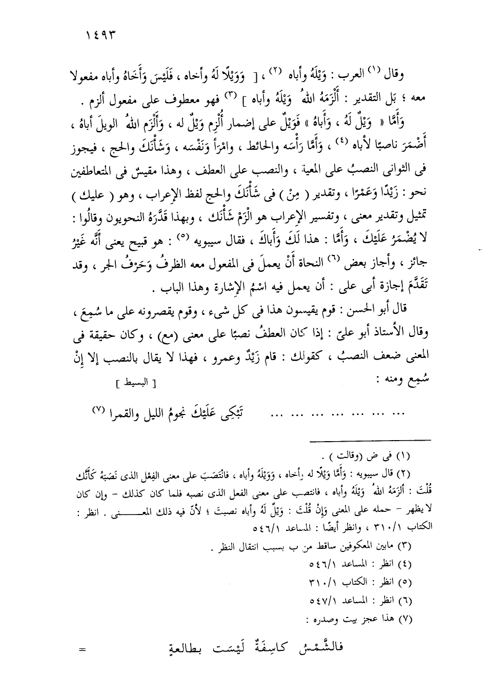 وقال العرب: ويله وأباه، [وويلاً له وأخاه، فليس وأخاه وأباه مفعولاً معه؛ بل التقدير: ألزمه الله ويله وأباه] فهو معطوف على مفعول ألزم.
