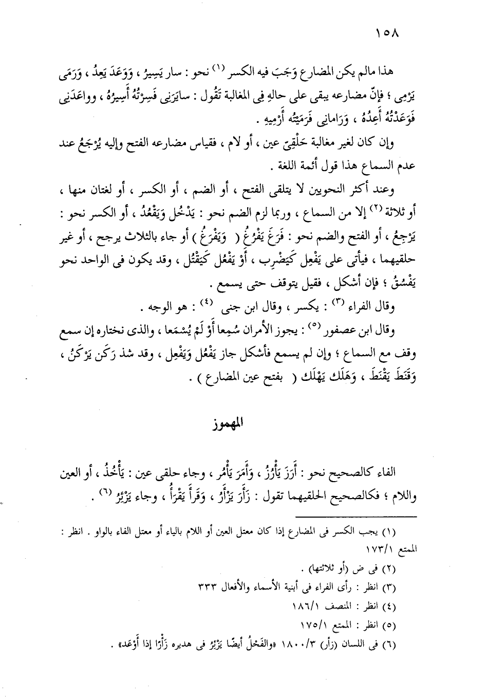 وعند أكثر النحويين لا يتلقى الفتح، أو الضم، أو الكسر، أو لغتان منها، أو ثلاثة إلا من السماع، وربما لزم الضم نحو: يدخل ويقعد، أو الكسر نحو: يرجع، أو الفتح والضم نحو: فرغ يفرغ (ويفرغ) أو جاء بالثلاث يرجع، أو غير حلقيهما، فيأتي على يفعل كيضرب، أو يفعل كيقتل، وقد يكون في الواحد نحو يفسق؛ فإن أشكل، فقيل يتوقف حتى يسمع.
