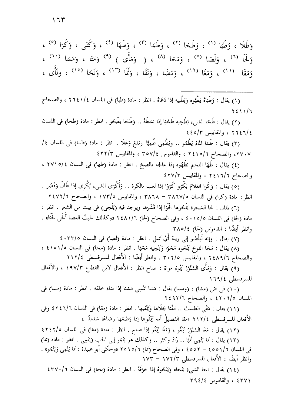 وطلا، وطبا، وطحا، وطما، وطها، وكنى، وكرا، ولحا، ولصا، ومحا، (ومأى) ومتا، ومسا، ومقا، ومغا، ومضا، ونقا، ونما، ونحا، ونأى،