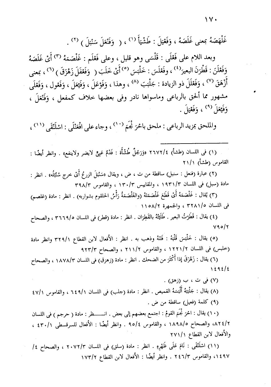 غلهصه بمعنى غلصه، وفعيل: طشيأ، (وفنعل سنبل).