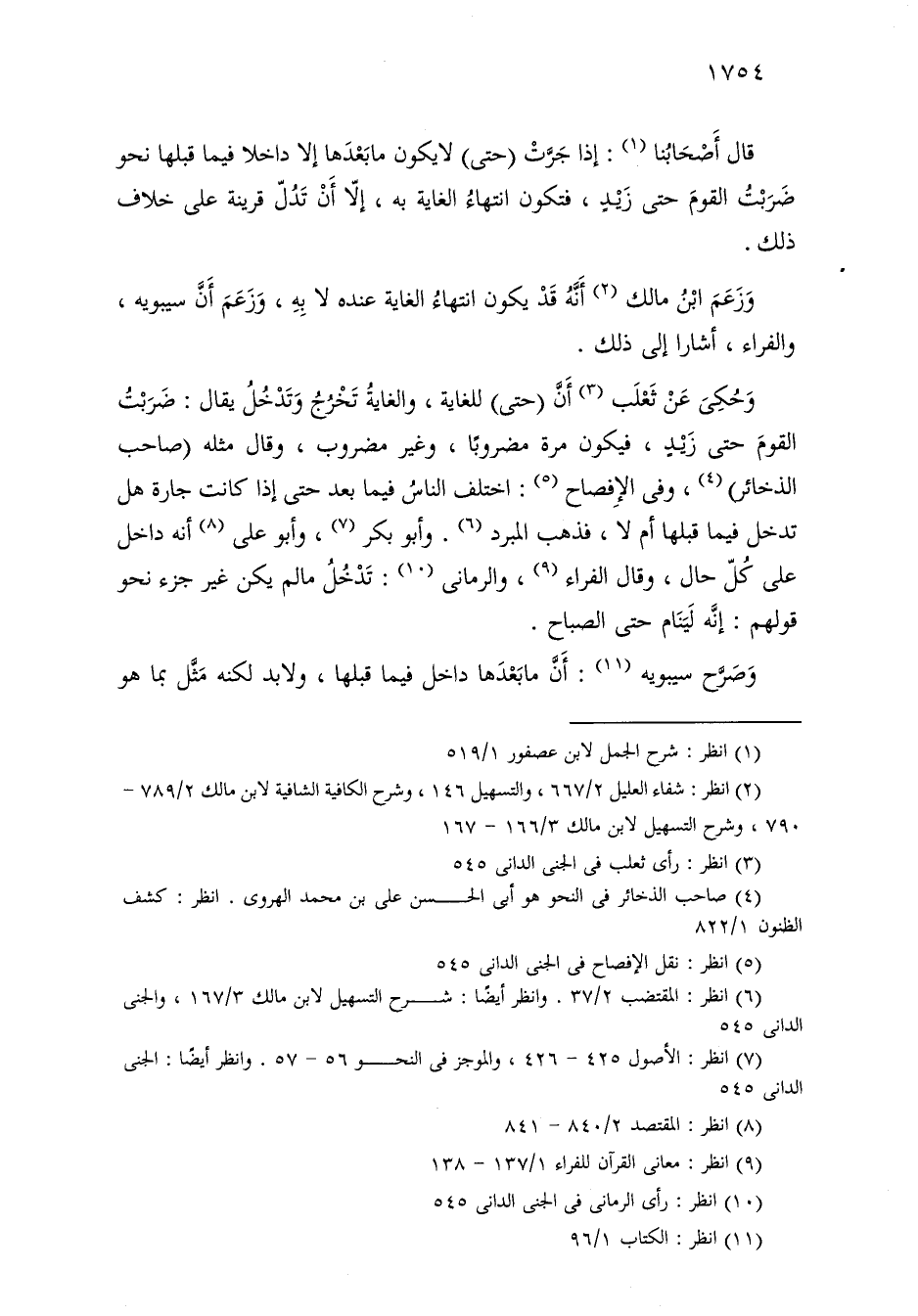 قال أصحابنا: إذا جرت (حتى) لا يكون ما بعدها إلا داخلاً فيما قبلها نحو ضربت القوم حتى زيد، فتكون انتهاء الغاية به، إلا أن تدل قرينة على خلاف ذلك.