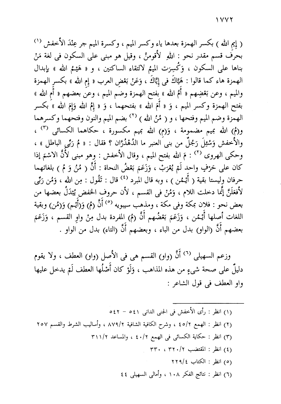 وزعم السهيلي أن (واو) القسم هي في الأصل (واو) العطف، ولا يقوم دليل على صحة شيء من هذه المذاهب، ولو كان أصلها العطف لم يدخل عليها واو العطف في قول الشاعر: