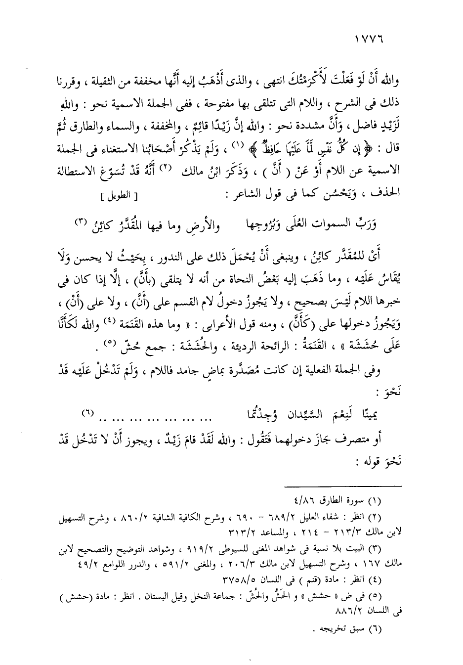 والله أن لو فعلت لأكرمتك انتهى، والذي أهذب إليه أنها مخففة من الثقيلة، وقررنا ذلك في الشرح، واللام التي تتلقى بها مفتوحة، ففي الجملة الاسمية نحو: والله لزيد فاضل، وأن مشددة نحو: والله إن زيدًا قائم، والمخففة، والسماء والطارق ثم قال: «إن كل نفس لما عليها حافظ»، ولم يذكر أصحابنا الاستغناء في الجملة الاسمية عن اللام أو عن (أن)، وذكر ابن مالك أنه قد تسوغ الاستطالة الحذف، ويحسن كما في قول الشاعر: